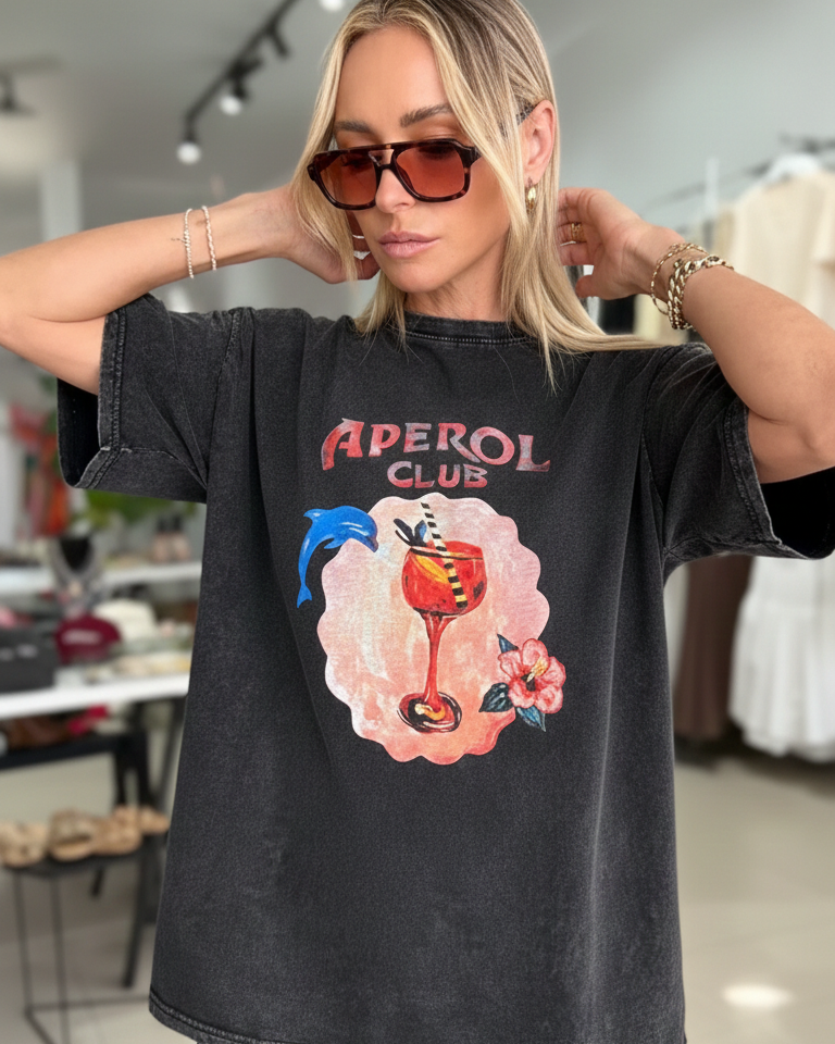 Rock a fun summer vibe with the Aperol Club tee, showcasing a whimsical cocktail design complete with a playful dolphin and blooming florals across the chest. Crafted from pure 100% cotton, this laid-back essential keeps you cool and comfy through warm days and casual hangouts. Designed by By Frankie, it features a clean, understated back—letting the front artwork steal the show.